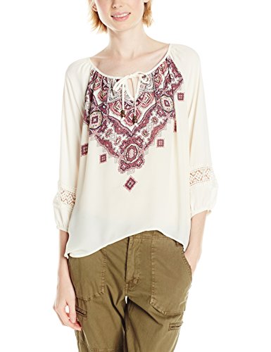 3/4 Sleeve Front Foil Printed Peasant Top and tie front