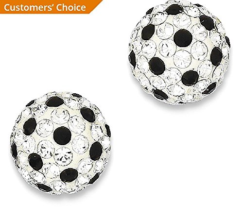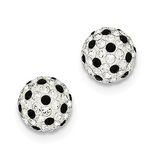 ICECARATS DESIGNER JEWELRY 925 STERLING SILVER WHITE BLACK STELLUX CRYSTAL 10MM POST STUD BALL BUTTON STUD EARRINGS