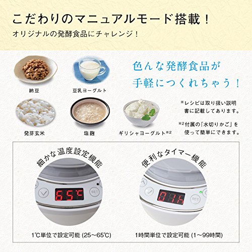 Studio : ROOMMATE Publisher : ROOMMATE Product Description Product features ◆ With this one you can make 【yoghurt / sweet alcohol / natto / salt koji / germinated brown rice / Greek yoghurt / soymilk yoghurt】. ● Easy cooking mode installation: Leave auto mode to yoghurt, sweet alcohol! ● Convenient timer function installed: Timer setting 1 to 99 hours ● Commitment manual mode installation: temperature setting 25 ~ 65 ℃ ● Various fermented foods can be made in various ways because it can be finely set. ※ ◆ Detailed description: Newsbridge 0