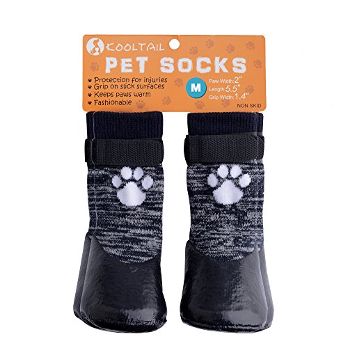 Studio : Best4cat Publisher : Best4cat Binding : Misc. Product Description Did you put blankets all over house to prevent your dog's slipping? Is your dog older, has trouble standing up and walking on hard surfaces? Anti-Slip Dog Socks with Velcro Straps by KOOLTAIL will help him/her! Three sizes you can choose: M/L/XL M-Paw Width: 2", Length: 5.5 ", Grip width: 1.4", Detachable Velcro Straps Length: 6". L-Paw Width: 2.2", Length: 5.9 ", Grip width: 1.6", Detachable Velcro Straps Length: 6.7". XL-Paw Width: 2.6", Length: 6.3 ", Grip width: 1.8", Detachable Velcro Straps Length: 6.7".