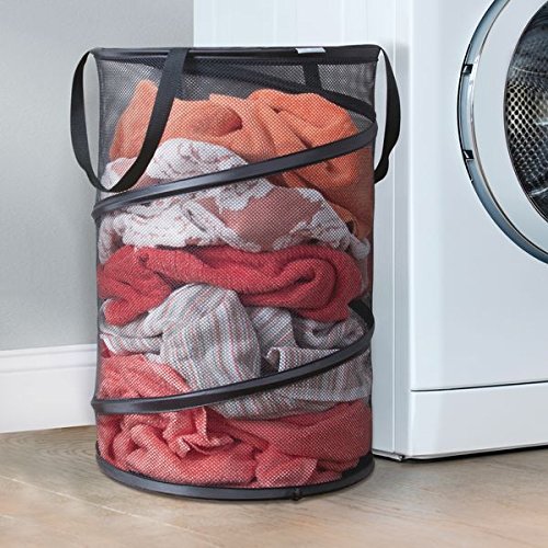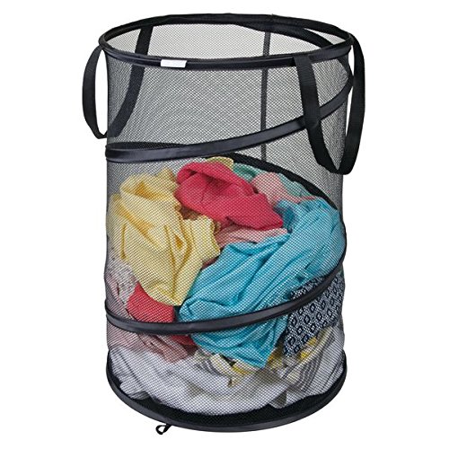 Studio : MetroDecor Publisher : MetroDecor Binding : Kitchen Product Description The Mesh Pop-Up Laundry Hamper from mDesign features a supportive spiral frame and offers a simple and convenient way to keep laundry clutter at bay. The pop-up hamper easily folds flat when not in use for compact storage and pops up and stays open, making it ideal for dorm rooms and small apartments! Two built-in handling straps allow for easy carrying from the bedroom to the laundry room or laundromat. This hamper is crafted from mesh fabric to allow for ample ventilation to reduce odor and moisture from damp laundry. 0