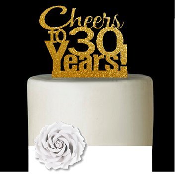 CakeSupplyShop Item#030CTA - 30th Birthday / Anniversary Cheers Super Gold Glitter Sparkle Elegant Cake Decoration Topper