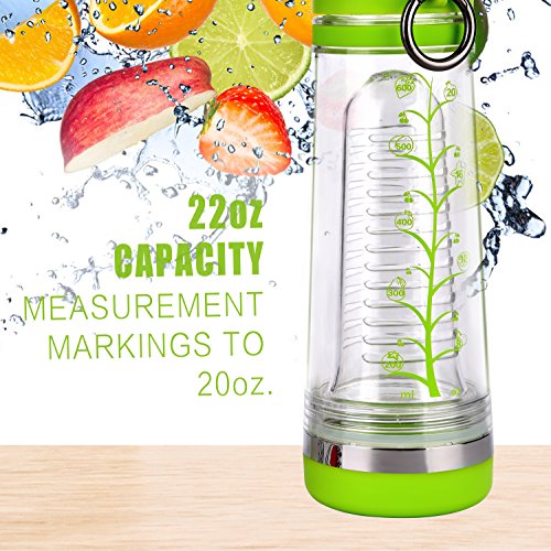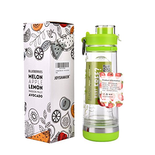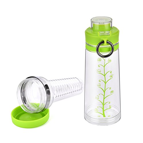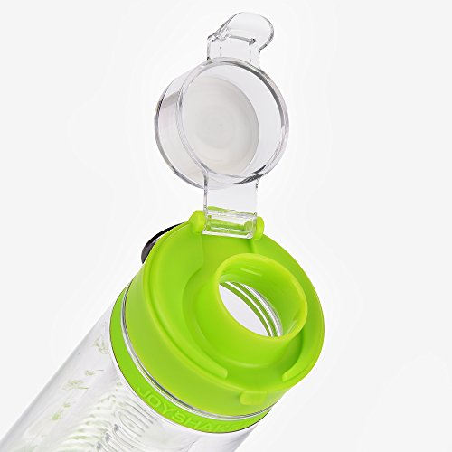 Joyshaker Fruit Infused Water Bottle With a Portable Metal Ring, Bottom Infuser Style with Flip Top Lid, Leak Proof, Made Of BPA Free Tritan Plastic 20oz