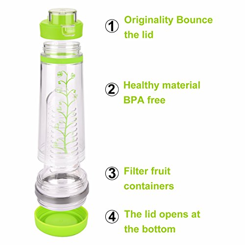 BOTTOM INFUSER DESIGN: Perfect ergonomic design! The fruit infuser placed at the bottle bottom, and the size big enough, to ensure fruits soaked in water longer, taste better.