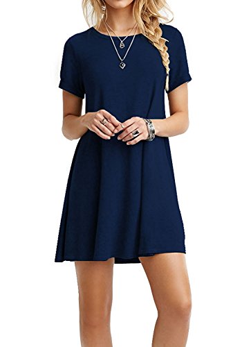 Women Short Sleeves Csual Simple Loose Tunic Dress;
