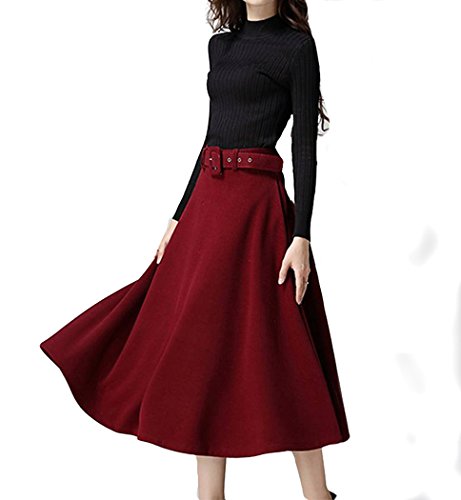 -. Title : Degel++ レディース ウール ロングスカート マキシ丈 ハイウエスト Aライン フレアー ロング 上品 きれいめ フェミニン オフィス 通勤 4色 S M L XL
