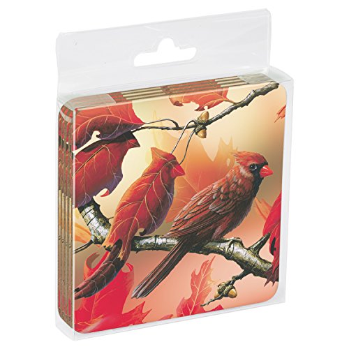 Tree-Free Greetings Set Of 4 Cork-Backed Coasters, 3.75 x 3.75 Inches, Seasons Change Themed Birds Art (52508)