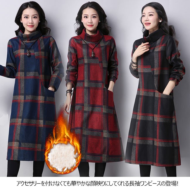 | 商品名 | ワンピース レディース 裏起毛 チェック柄 暖かい 裏ボア マキシ丈ワンピース タートルネック ゆったり カジュアル 秋 冬 2018春新作 |