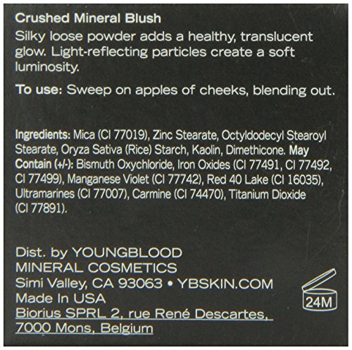 Youngblood - cheek - crushed loose mineral blush lightweight, crushed powder for cheeks provides a touch of luscious color imparts a healthy natural glow features a sifter component for easy and precise dispensing applicable to temples, eyes, or lips as well. These cosmetics are authentic and at an affordable price. Provides brilliant, long lasting color. 100% authentic.Feature