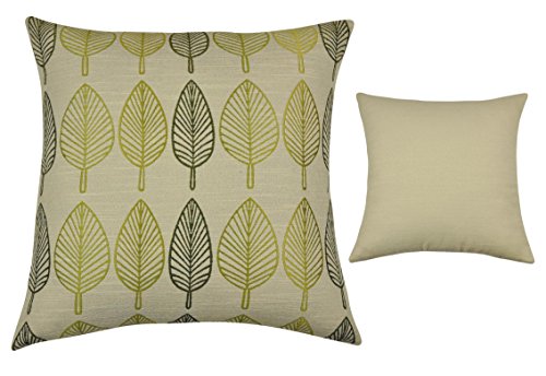 Chic Home Falling Leaf Luxury Decorative Square Pillows, Green Beige, 18 by 18-Inch, Set of 2