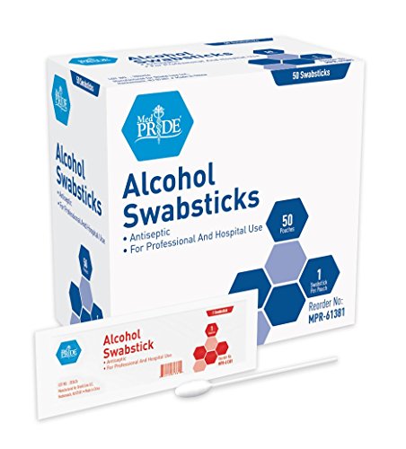 Studio : MedPride Publisher : MedPride Binding : Health and Beauty Product Description MedPride Alcohol Swabs are ideal for hospitals and clinics for the medical professional. The MedPride Alcohol Swabsticks are packaged with 1 swabstick per packet. The MedPride Alcohol Swabsticks are packaged with 3 swabsticks per package. Each swabstick is 4 inches in length. These Alcohol Swabs are saturated with 70 percent isopropyl alcohol. This item is not eligible for free shipping. 0