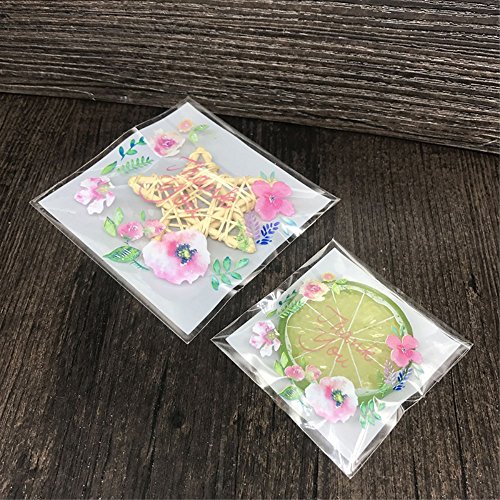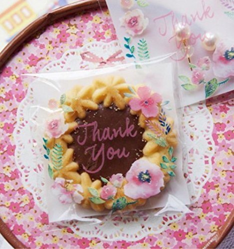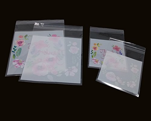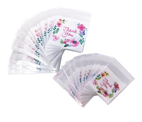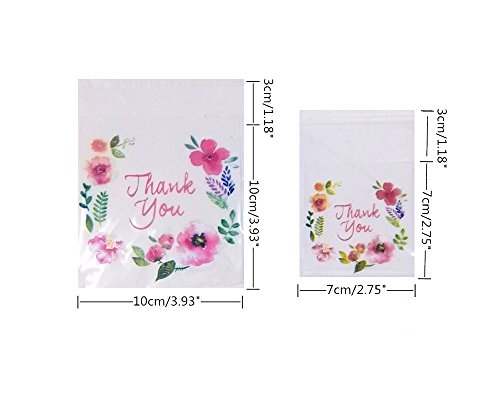 Honbay 200pcs 2 Different Size Floral Flower THANK YOU Cookie Biscuits Candy Soap Packaging Self-adhesive Plastic Bags for Bakery Party Wedding Birthday Gift