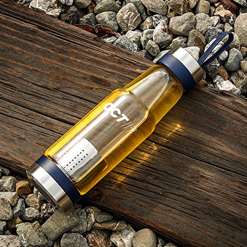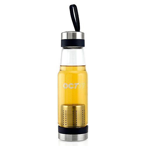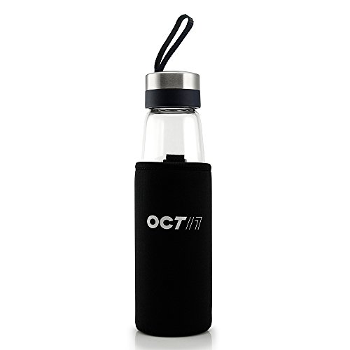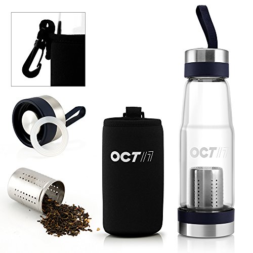 Oct17 Tea Fruit Infuser Glass Water Bottle - Hot and Cold Fruit Drink Containers, Extra Strong Stainless Steel, Portable Sport Travel Bottles And Sleeve Combo Set
