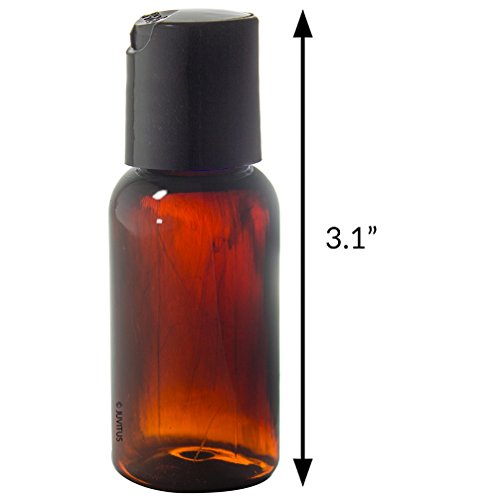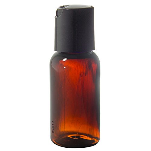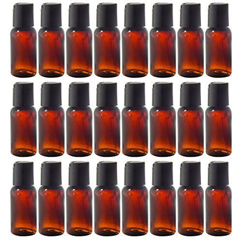 Amber 1 oz Boston Round PET (BPA Free) Bottles with Black Disc Cap Dispenser (24 Pack) + Labels