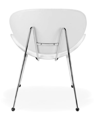 - Feature : Occasional 2-chair Match set from Zuo Modern; an update retro Space Age design concepts with Match chair?s oversized spherical scoop seat and matching back, wide splayed legs, and connected 2 tube frame / Chrome plated, each chair features 2 tubular steel legs that run from the front feet on the floor, under the seat, up the backrest, and then fold back to touch the ground at the back feet; a strong steel bar links the 2 half way up the chair?s back / Crafted in high quality, washable vinyl, the chair?s 15-inch high scoop seat and matching backrest support up to 250 pounds; black vinyl knobs cover the feet of each chair to prevent slippage or scratches to hard floors / Chair set cleans easily with a damp wash cloth and chairs come with necessary tools required for a fast home assembly; in addition to this white chair set, a black set also is available / Each chair measures 25 inches wide by 24 inches deep by 29 inches high and weighs 18 pounds; limited 1-year warranty for defects in material and workmanship