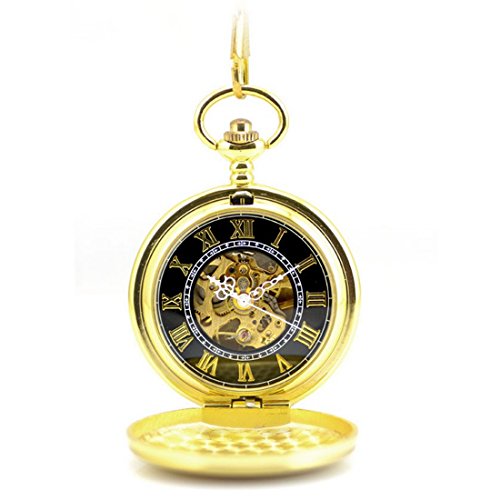 -. Title : WZC Luxury Gold Mechanical Pocket Watch Roman Numerals