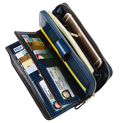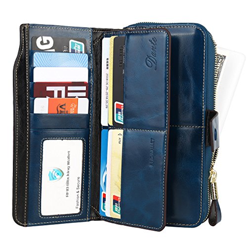 -. Title : Dante RFID Blocking Large Capacity Wax Real Leather Wallet Clutch Travel Purse for Women