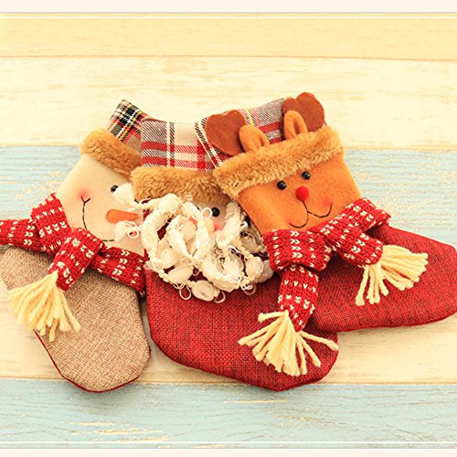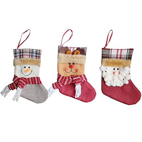 - Package Include: 3 x Christmas Stocking - Santa Claus, Snowman, Elk. Size:7.5" tall