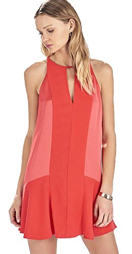 Slim keyholes accent the neck and back of this tonal, mixed-texture Parker cocktail dress. A button strap fastens over the back keyhole. Lined.