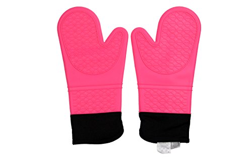 ShengHai Baking Gloves–Silicone Oven Mitts 14.5-Inch Extra Long Heat Resistant Kitchen Cooking Gloves with Quilted Cotton Lining None-Slip Cooking Pinch Grips for Bakers Baking BBQ (1 Pair) (Red)