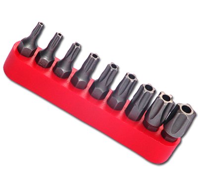 - 1/4" shank hex bits in sizes T10, T15, T20, T25, T27, T30, T40, T45 & T50; 1" length, holder sleeve