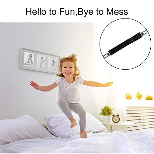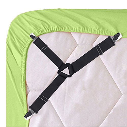 Studio : Tuzeasa Publisher : Tuzeasa Product Description Tuzeasa is dedicated to provide high-quality and creative household products! Use sheet fasteners and you never worry about messy or wrinkled sheets again. They secure fitted sheets, flat sheets, mattress pads, and even ironing board covers. They are easy to use and keep your bed looking great at all times. Made of durable heavy-duty elastic. Comes with 4pcs triangle style grippers and 4 normal style ones. 0