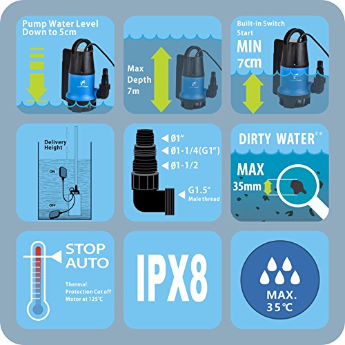 FLUENT POWER Built-in Float Submersible Pump - 110V/60Hz 1/2HP 2700 GPH Automatically ON/OFF and Prevent Dry Running