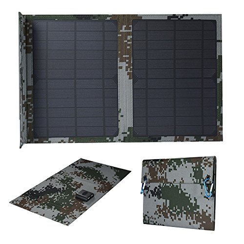-. Feature : ▲SOLAR PANEL CHARGER: with high-efficiency monocrystalline silicon solar cells and high light sensitivity, generation rate of this solar charger is more than 1.2 times of that of ordinary solar cells, can also be charged even in cloudy day / ▲FAST CHARGING TECHNOLOGY: Bulit-in voltage regulator system, the conversion rate is over 93%. six to eight hours under direct sunlight can be filled with 10000 mah battery (mobile power). / ▲WIDE CAPABILITY: Dual USB 5V output, charge two mobile devices simultaneously, compatible with the wild head lamp, flashlight, camping lights, GPS, digital cameras, cell phones, walkie-talkie,Mp3, mp4,mp5 charger and more. / ▲WATERPRROOF& DURABLE: Made of waterproof canvas and camouflage cloth, ensures this solar charger sturdy and durable, and weather-resistant, ideal for outdoor camping and backpacking. / ▲PORTABLE FOR OUTDOOR: Foldable design with Lightweight, make it easy to carry out, Free Climbing Hook and Stainless-steel Eye-holes, can be attached to your backpacks, trees, tents and others.
