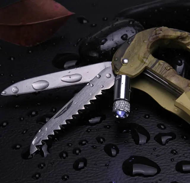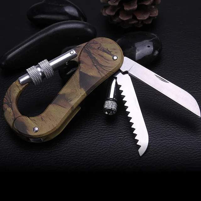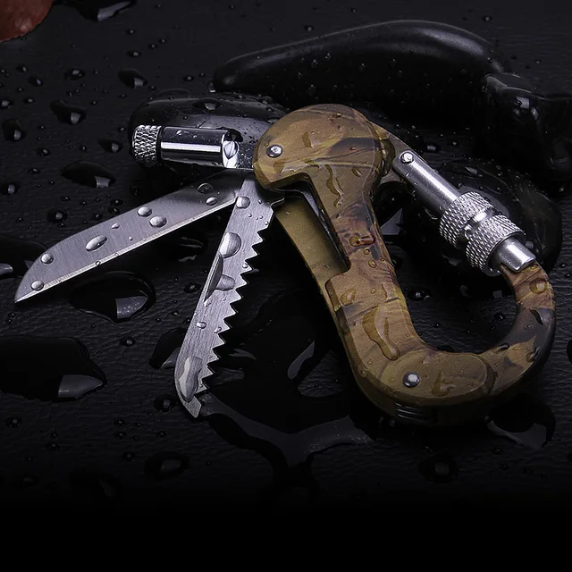 [해외] 다기능 캠핑 접이식 칼 카라비너 생존 칼 다기능 야외 등산 버클 가구