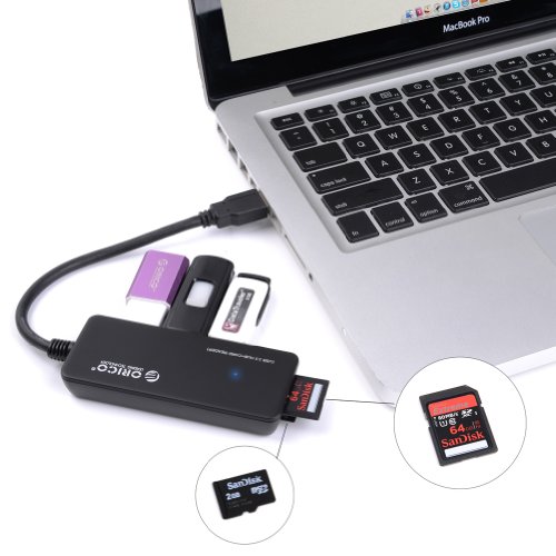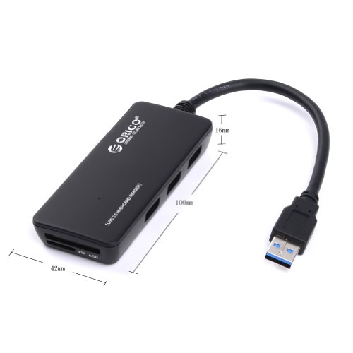 ORICO SuperSpeed USB 3.0 Hub with Built-In TF & SD Card Reader to 5Gbps - Black (H3TS-U3) B00KG6LIUY