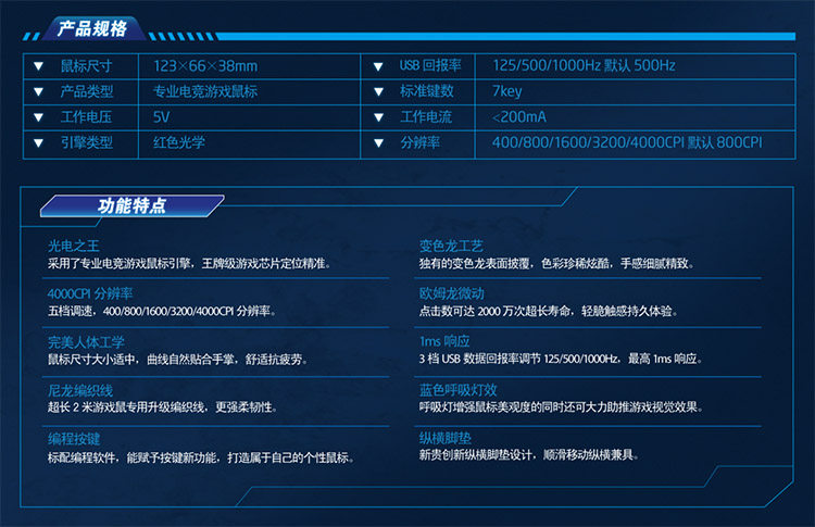 GX1-Pro 专业电竞光学游戏鼠标 幻彩漆发光 LOL/CF
