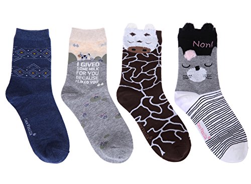 -. Feature : MATERIAL: 80% Cotton, 20% Spandex; 100% Brand New High Quality Cartoon Animal Socks, Comfy Fabric And a Downright Adorable Pattern,Rich Cotton - Soft,Breathable,Wearable, Moisture-Wicking And Odor-Fighting,Stretchy And Durable.Fun, Trendy And Unique Designs Perfect For Every Season! / SIZE & PACKAGE: Fit Shoe Size US 5-9; Package: 4 Pairs Gift Box. / They are high quality, elastic and enhanced cuffs hold socks comfortably in place, they will not dig into your shins. Vintage, Novelty Sneaker Socks. Applicable to many occasions - Casual, Wear to Work, Sports, boot, hiking, running, exercise etc. / Give Cartoon Animal socks to grandmother, mother, sister as a holiday gift, such as Mother's Day gifts, Christmas gifts, New Year gifts. / SATISFACTION GUARANTEE: We are committed to our customer's satisfaction & buy with confidence. If you're not satisfied with this product for any reason, let us know and we will offer you refund meaning you never need to worry. If you have any problems, please contact us.