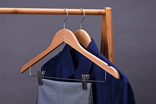-. Binding : Kitchen -. Brand : J.S. Hanger -. Feature : Reorganize your closet well - Hang shirts and pants at once on one hanger or separately / Built to hold all shapes and styles of pants, shirts and coats / 360 degree swivel hook, sturdy construction to fit all standard closet rods / Two adjustable anti-rust clips with soft felt lining to safely grip even delicate garment / Slim profile maximizes your closet space -. Label : J.S. Hanger -. Manufacturer : J.S. Hanger -. ProductGroup : Home -. ProductTypeName : HOME -. Publisher : J.S. Hanger -. Studio : J.S. Hanger -. Title : J.S. Hanger 10-Pack Wooden Suit Hangers with Clips