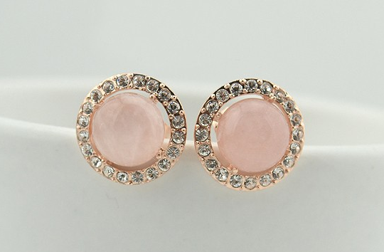 anting Antik merah muda bulat Kristal Perhiasan pesta pernikahan Antique pink round Opal Crystal full 18K gold plated stud earrings noble fashion Jewelry wedding JEW SJA0846535262 GHJ qty000