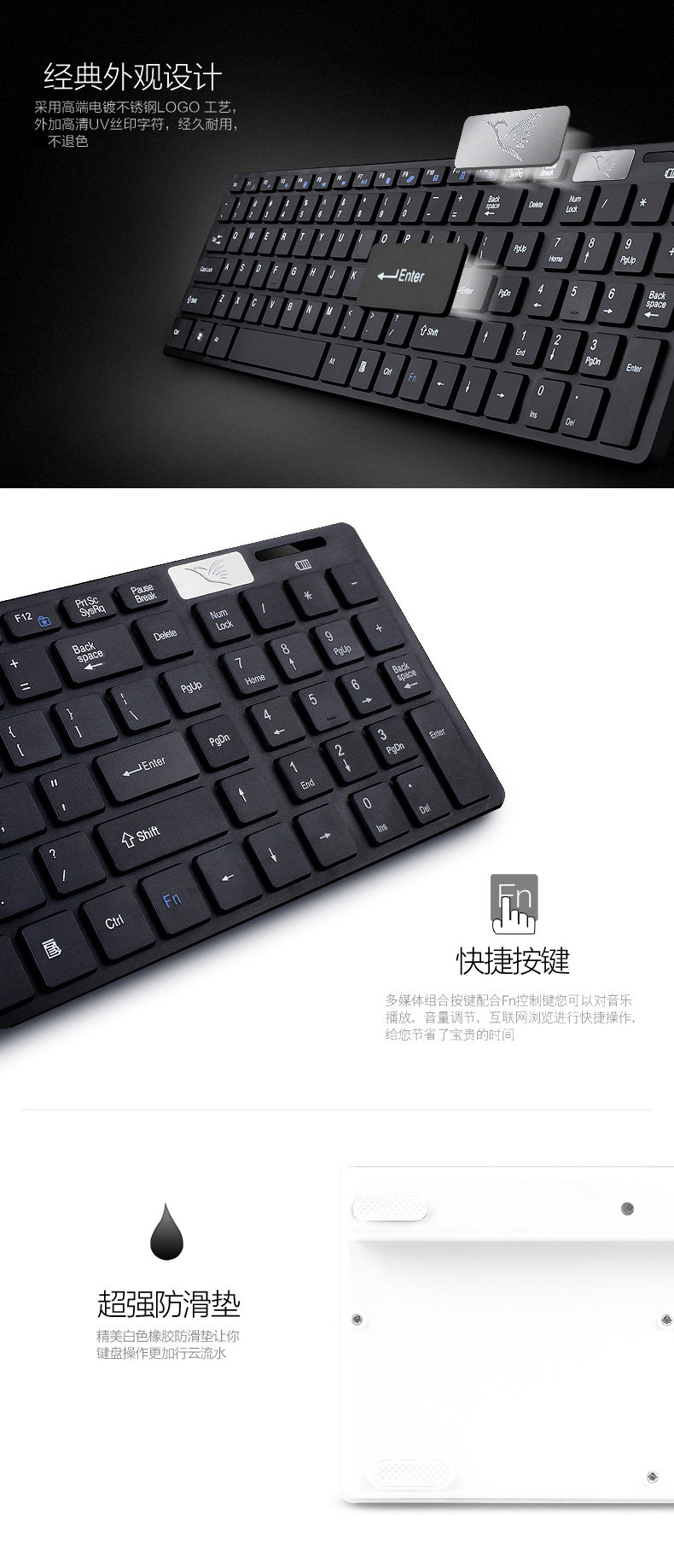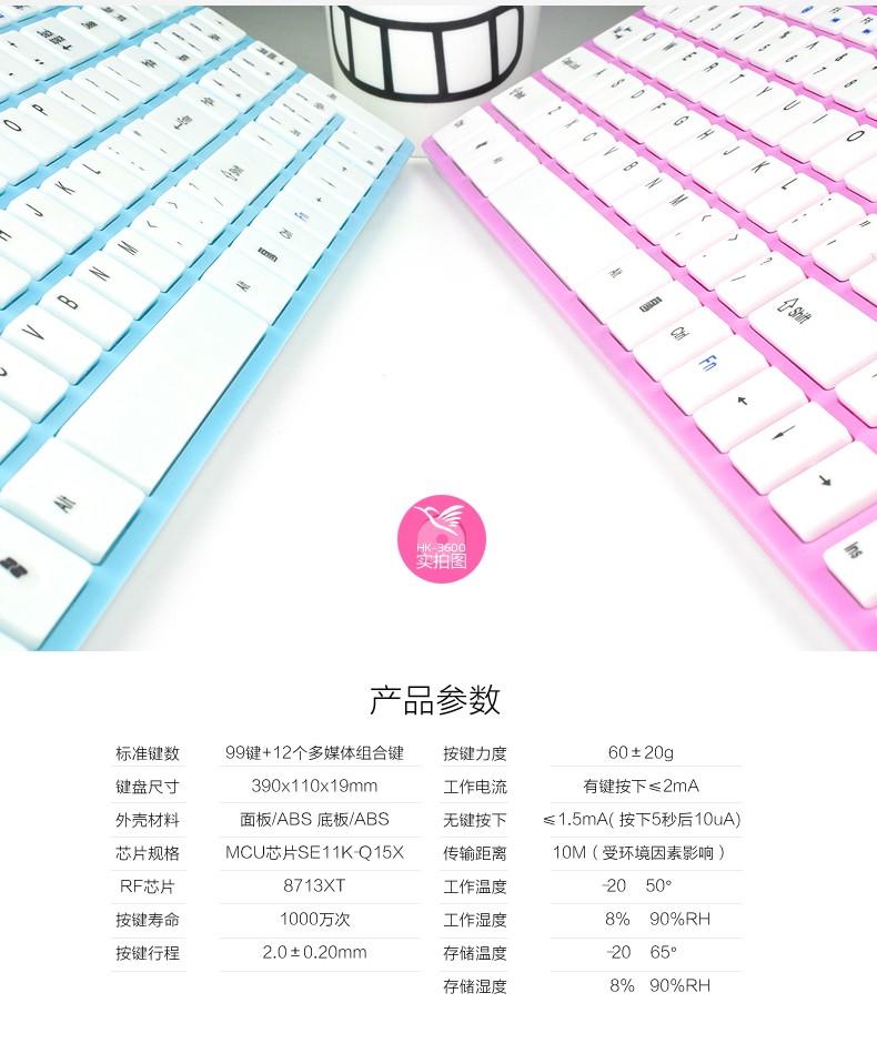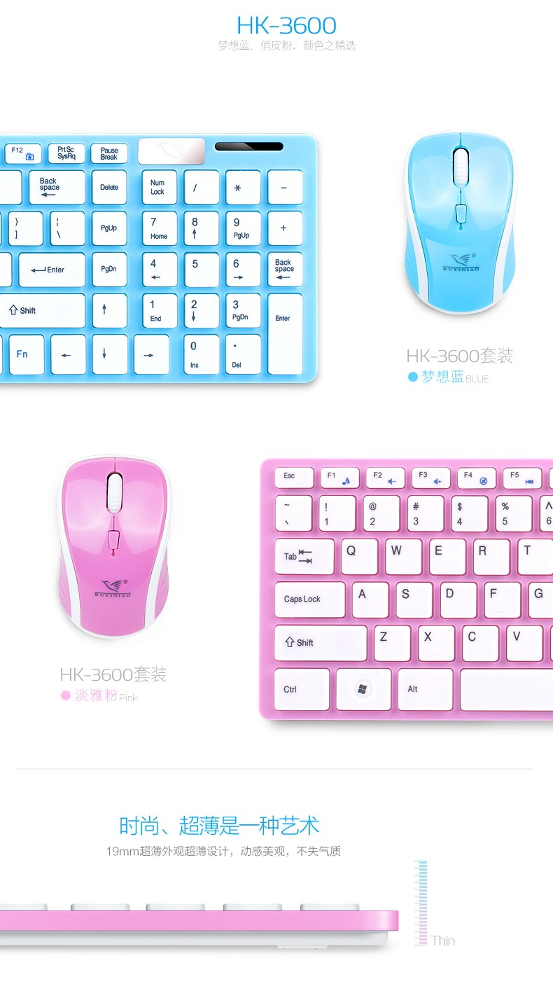 如意鸟 无线键盘鼠标套装 电脑 电视游戏超薄键鼠套件 智能省电