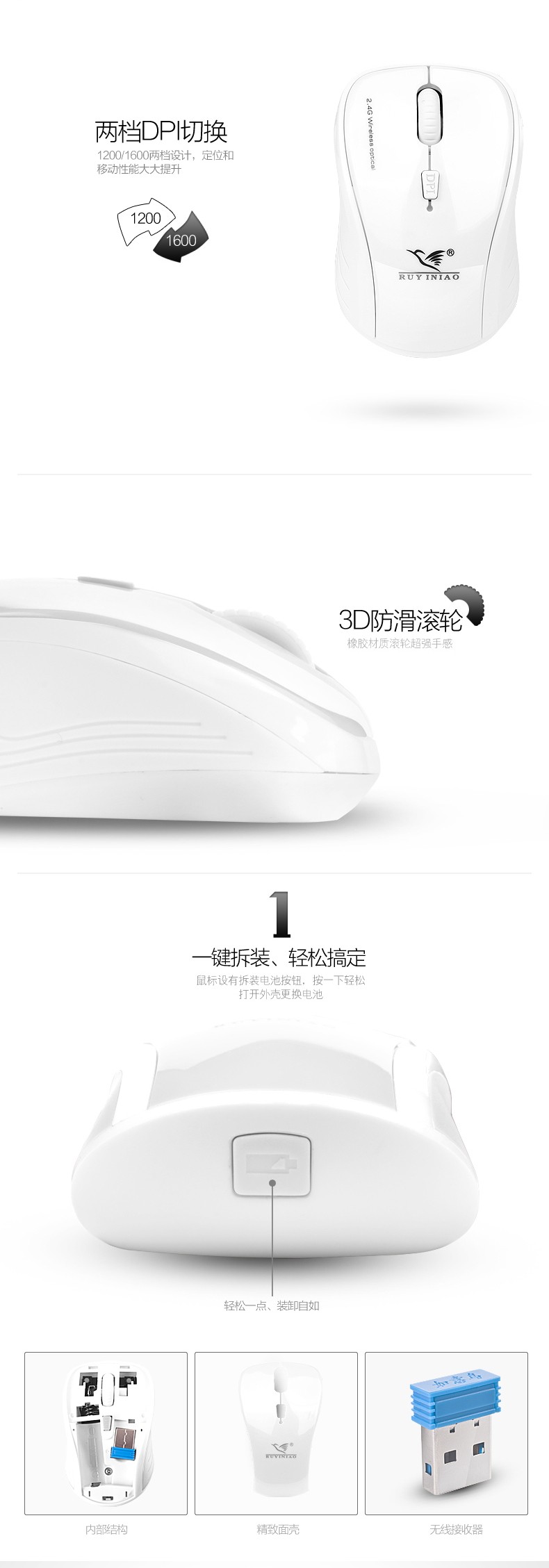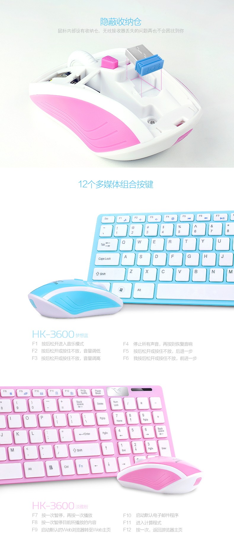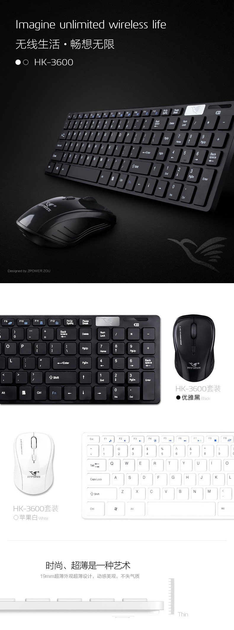 如意鸟 无线键盘鼠标套装 电脑 电视游戏超薄键鼠套件 智能省电