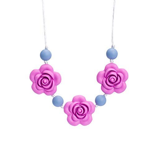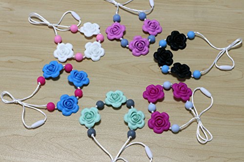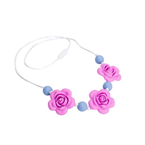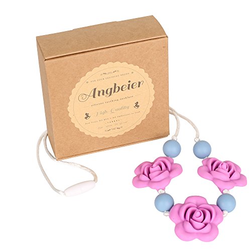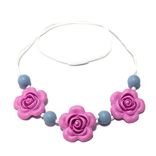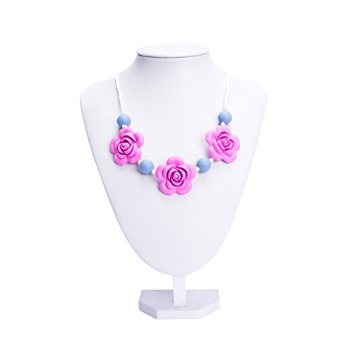 Silicone Teething Necklace - Baby Safe For Mom To Wear - BPA FREE Chew Beads - Stylish&Natural(powder blue&opera pink)