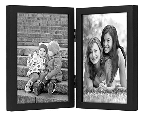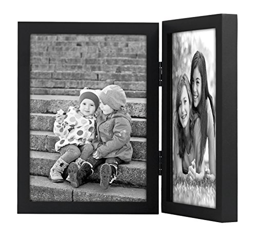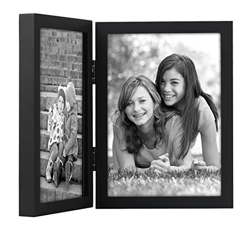 Americanflat 5x7 Inch Black Hinged Picture Frame with Glass Front, Stands Vertically on Desktop or Table Top