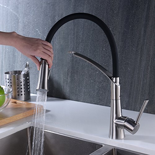 CREA Modern Kitchen Faucet, Stainless Steel Single Handle Pull Down Sprayer Kitchen Faucet Basin Sink Mixer Tap Brushed Nickel