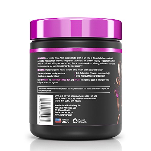Immediate absorption provides immediate effects: Unlike proteins and other macronutrients, Her Aminos can be absorbed into your muscles within a matter of minutes after ingestion. Almost immediately after taking your dose of Her Aminos, you force your body into an instant catabolic (muscle breakdown) halt, increasing protein synthesis (muscle growth) and getting energy from the aminos and nutrients instead of breaking down your muscles.* We recommend that you take Her Aminos before, during, and after each workout session. When you have a constant supply of Her Aminos in your system during this peri-workout period, you are supporting minimal muscular breakdown during intense exercise and increasing recovery. You will immediately notice extra strength and endurance during your workouts, rapid recovery and less muscular soreness after your workouts. Supplementing with Her Aminos on a regular basis will help take your performance, physique, and training to a new level.