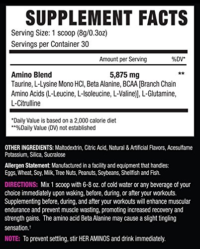Her Aminos is a blend of amino acids designed to be taken at any time of the day to fuel your muscles with nutrients that increase protein synthesis, helps prevent catabolism and enhance recovery.* Supplementing with Her Aminos on a daily basis will support recovery between workouts, allowing you to bounce back quicker from intense exercise and come back stronger at your next session!* Increases Endurance, Builds Lean Muscle, & Enhances Recovery!