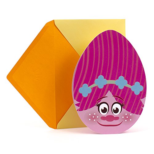Reach out to friends, extended family, coworkers, and more in your Easter greetings this year with this fun card featuring Princess Poppy in an Easter egg shape. Printed on high quality paper stock, this Easter card is a sweet way to send a thoughtful note to anyone on your list. Open the card to reveal the inside message, "Wishing You an Extra Colorful Easter!" The card measures 8.3 inches long by 5.8 inches wide; an envelope is included. All Hallmark cards are made with paper from well-managed forests. Hallmark was founded in 1910 when 18-year-old J.C. Hall arrived in Kansas City, Missouri, with a couple of shoeboxes of postcards under his arm and the American dream in his heart. Hallmark greeting cards are sold online and in nearly 40,000 retail stores across the globe and people continue to recognize the iconic Hallmark brand as "the very best."Feature