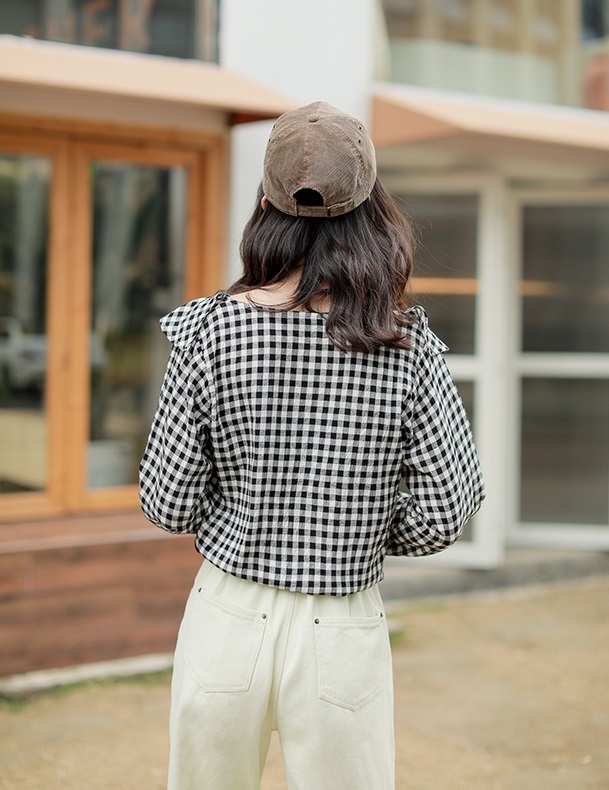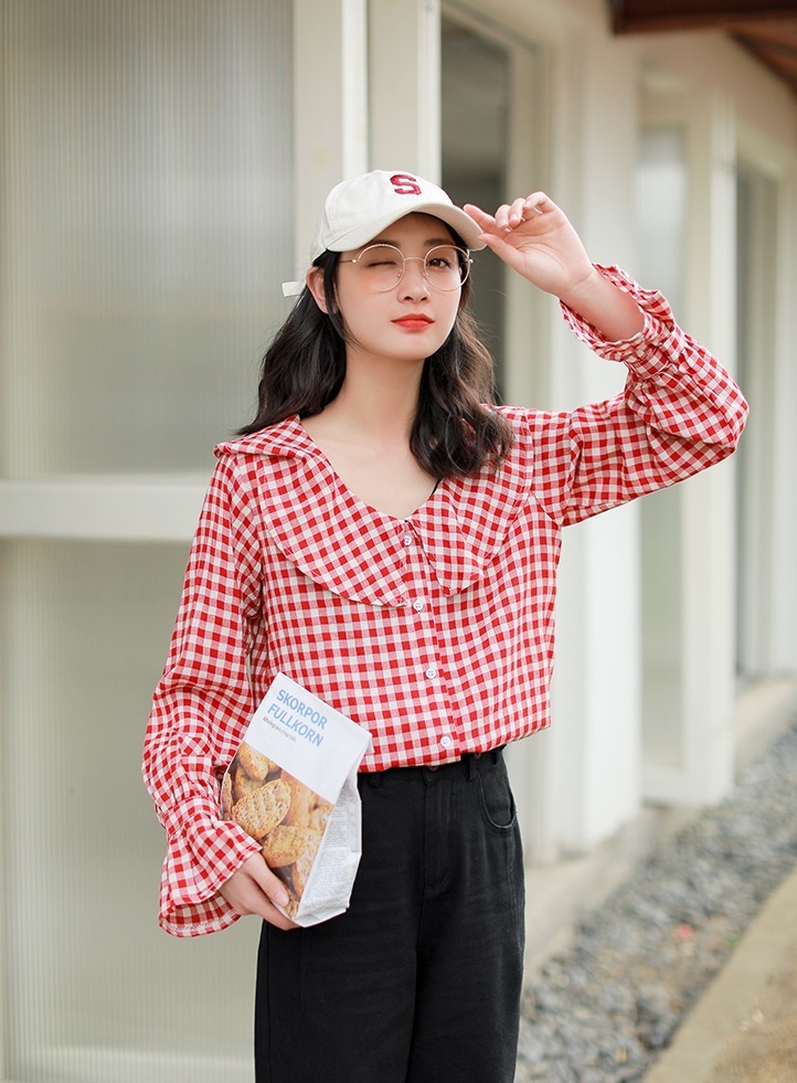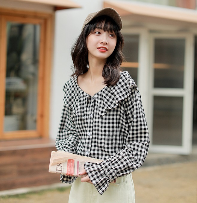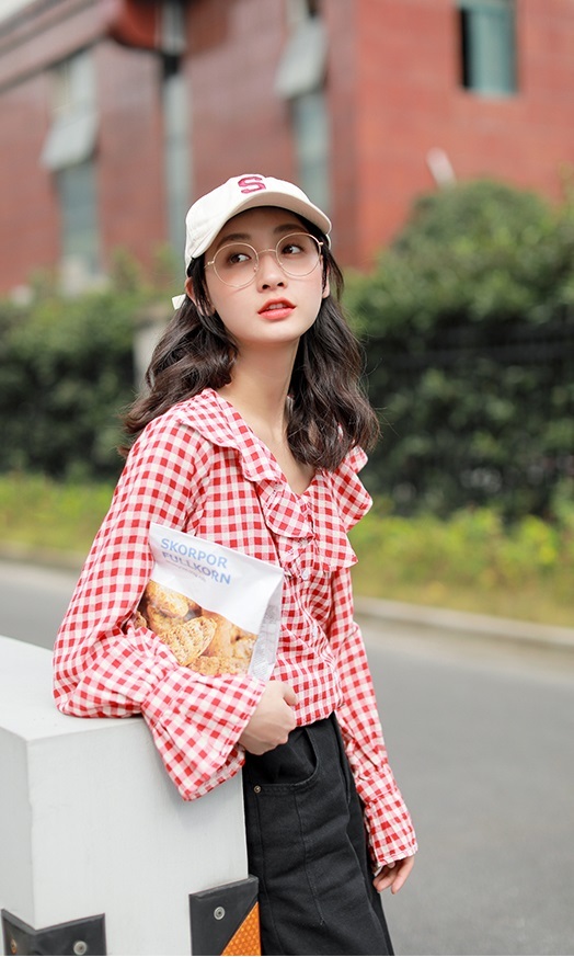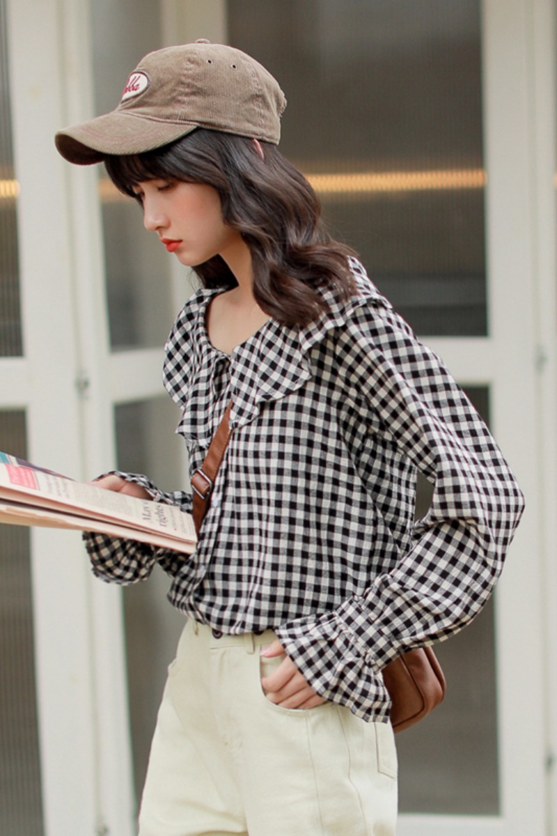 襟ぐりが大きく開き、デコルテラインをきれいに見せてくれるカジュアルなブラウス。