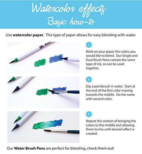 - WATERCOLOR EFFECTS – The ink blends excellently with water on appropriate surfaces (watercolor pads work best), adding another dimension to creating art – Use water to give smooth highlighting, shadowing and blending effects