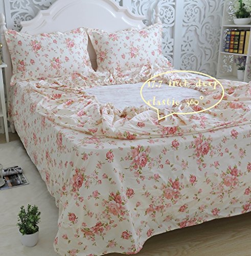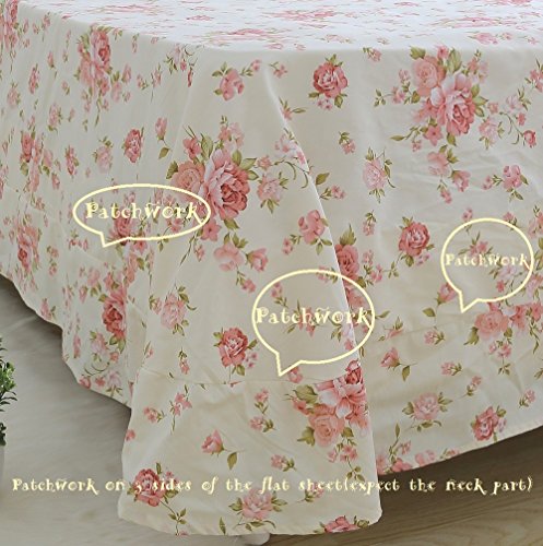 Brandream Shabby Floral Bed Sheet Set 100% Cotton Sheets Set 4pcs-Queen Size