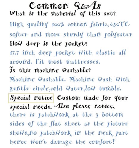 - CUSTOM MADE STYLE - please contact us if you like matching duvet cover and pillowcases or any other special needs!Also PLEASE BE KINDLY INFORMED that there is patchwork at the 3 bottom sides of the flat sheet like the picture shows,NO PATCHWORK IN THE NECK PART hence won't damage the comfort!