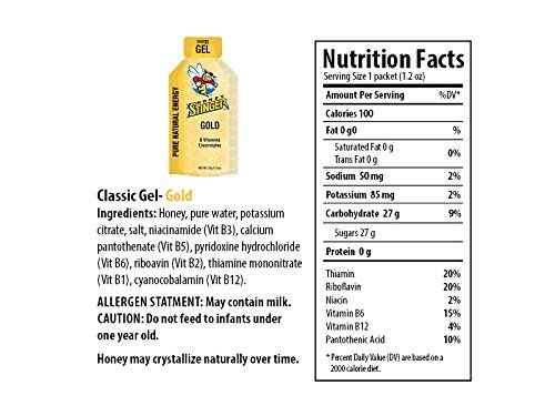 Studio : Honey Stinger Publisher : Honey Stinger Binding : Health and Beauty Product Description Gold is the core of the Honey Stinger gel line. Containing 95% honey and certified gluten free, our original Gold Gel is great before or during activity and proven to be a favorite amongst endurance athletes for nearly a decade.. Ginsting contains Siberian ginseng for mental clarity, energy and increased stamina plus 32mg of caffeine from kola nut extract. Ginsting Gel are certified gluten free and use the same base ingredients as the Gold, but boasts a richer, darker honey flavor derived from the kola nut extract. Ginsting Gel will give you that extra buzz! Honey Stinger Classic Energy Gels are more versatile than other energy gels. Consume it straight from the packet before or during activity or spread it on toast or stir it into tea. Both flavors also mix well with water to make a natural energy drink. Honey has been used for centuries as a source of pure energy and modern research is providing us with more information to show the benefits of how well it works. 0