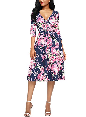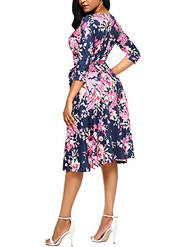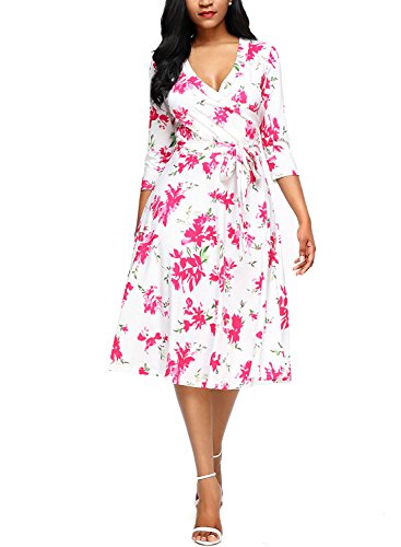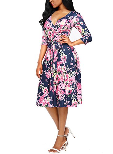 Dokotoo Womens Casual Summer V Neck Floral Print Dress with Belt