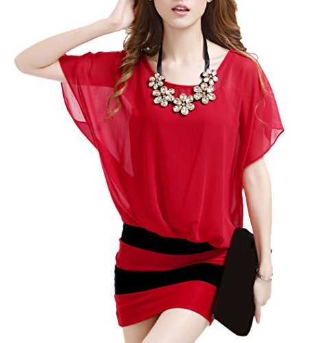 -. Title : Snoneワンピース セクシー 半袖 夏 タイト ミニ ドレス バットスリーブ ワンピース シフォン 丸い襟 ネックレス 付き レディース