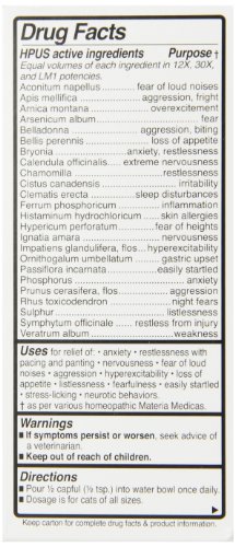 -. Feature : All natural, homeopathic medicine for the relief of symp due to stress and anxiety / Easy to dose and easy to use, just add a half capful every time you fill your pets water bowl / Safe, Gentle, Pure and Effective / Taste-free and Odor-free, your pet won't even know it's there / No known negative side-effects or drug interactions